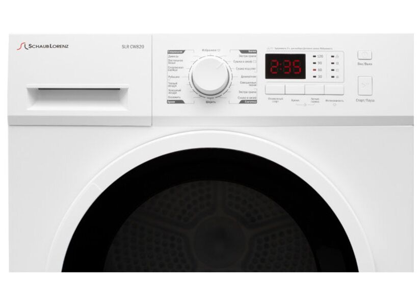 Программы сушки: Хлопок, Синтетика, Деликатная, Смешанные ткани, Блузки/Рубашки, Джинсы, Спортивная одежда, Освежить (от 10 минут), Сушка в шкаф хлопок, Сушка под утюг хлопок, Сушка в шкаф синтетика, Постельное белье, Избранное, Настройка интенсивности сушки