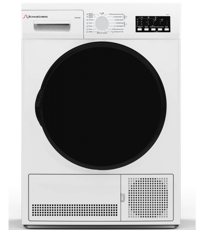 Представленная модель Schaub Lorenz SLR F2721 выполнена в европейском стиле с тонированным люком и LED дисплеем. Барабан с загрузкой 7 кг сделан из нержавеющей стали и дополнен подсветкой. Сушильная машина от Schaub Lorenz обладает конденсационным типом сушки.
