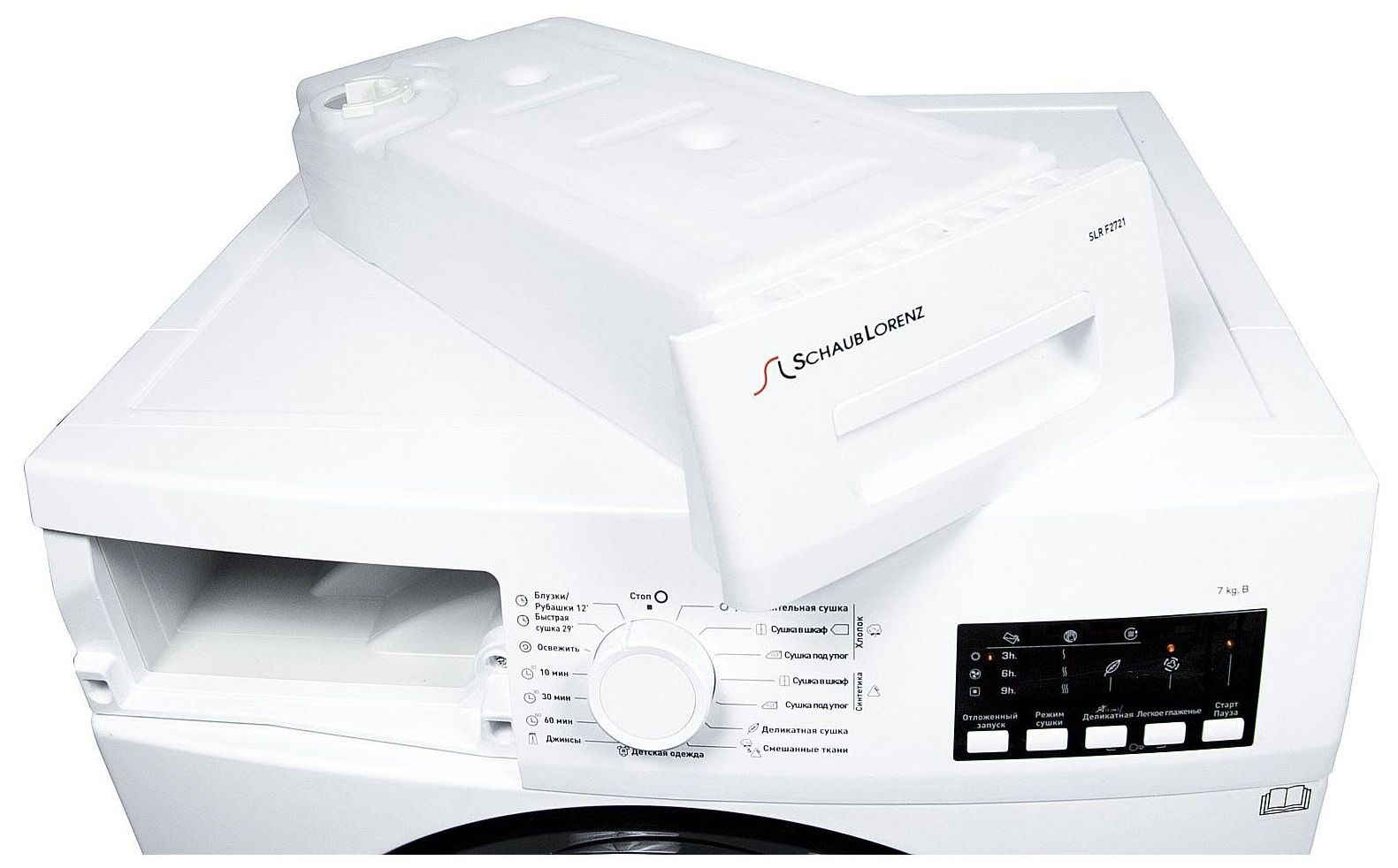Сушильную машину Schaub Lorenz можно установить как отдельностоящую или в колонну со стиральной машиной, благодаря соединительному элементу "Кит".
