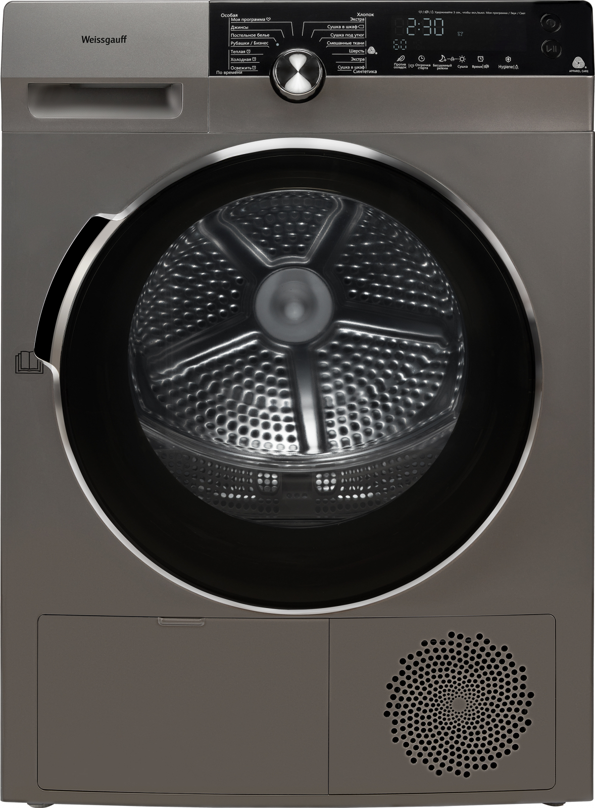Дизайн, выполненный в цвете "серебристый металлик", станет финальным штрихом в совершенстве облика этой модели. Каждый раз, взаимодействуя с сушильной машиной от Weissgauff, вы будете в полной мере ощущать, как она способна не только послужить вам богатством своего функционала, но и стать настоящим украшением интерьера!