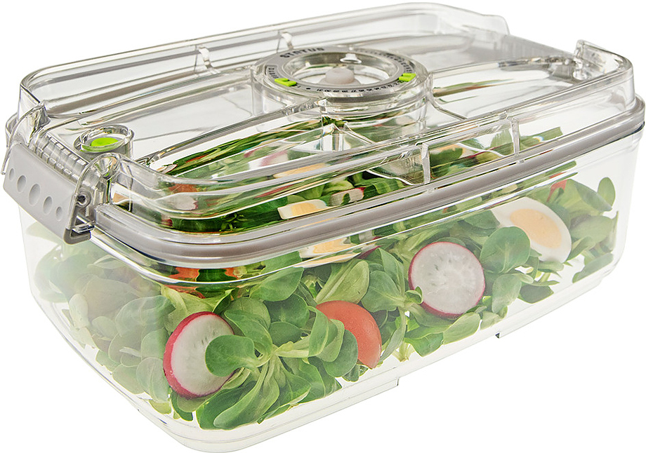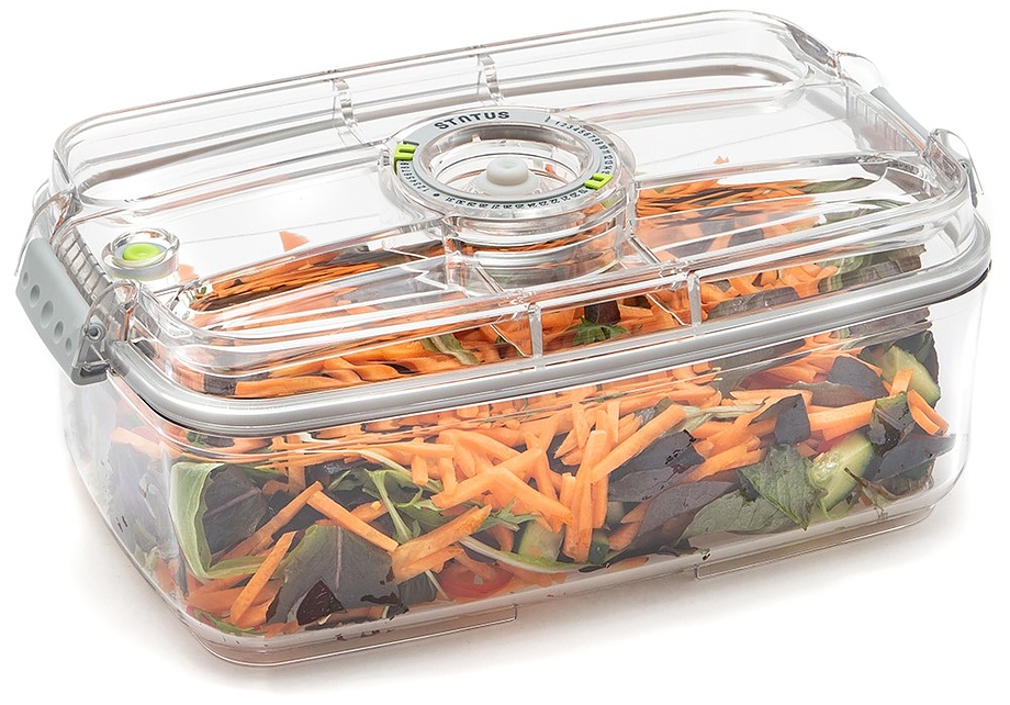 Вакуумный контейнер Status VAC-REC-30 Full tritan используется совместно с вакуумными упаковщиками, поддерживающими подключение вакуумного шланга, или с ручным насосом для упаковки продуктов в частных домах и квартирах для последующего их хранения. Модель имеет прямоугольную форму, оснащена индикаторами даты (месяц и число) и вакуума на крышке. Изделие выполнено из тритана.