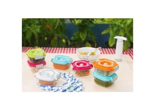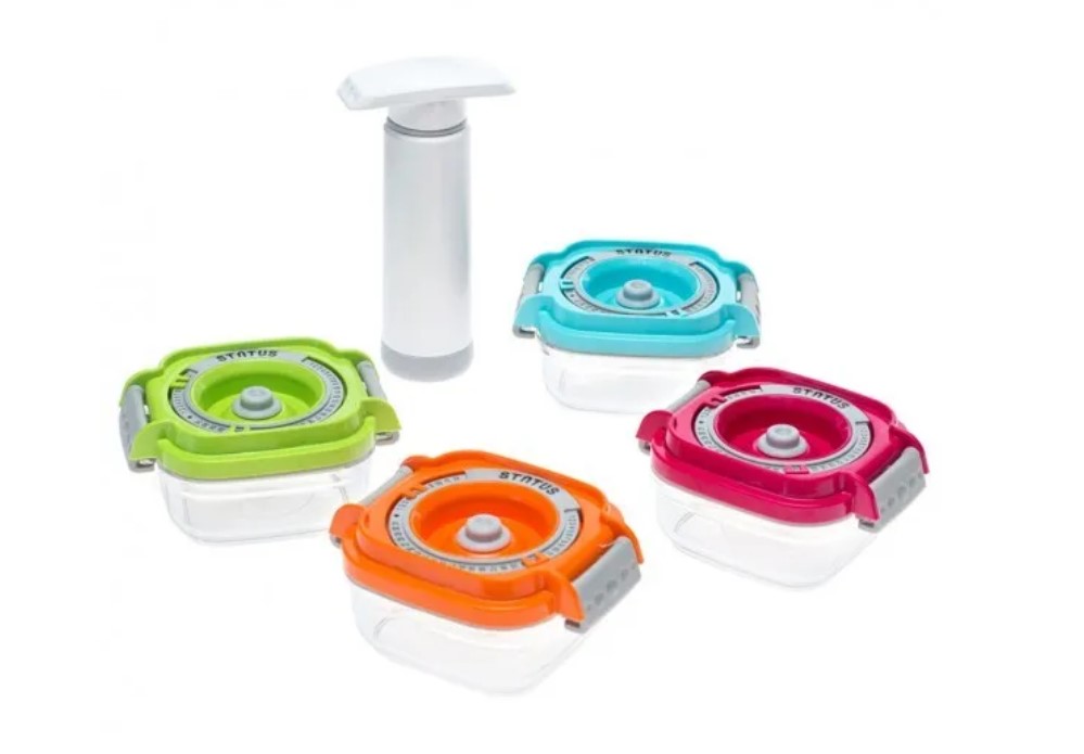 Комплектация: контейнеры 0,15 л — 4 шт (зеленый, оранжевый, розовый, голубой) + ручной насос в подарок