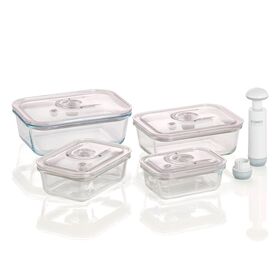 Вакуумные контейнеры CASO VacuBoxx E-set произведены из стекла высокого качества. Крышки изготовлены из тритана. Это инновационный материал, который выгодно отличается от традиционного пластика по множеству параметров: высокая ударопрочность, стойкость к высоким температурам и прозрачность. Он не мутнеет, время не изменит его цвет и форму.