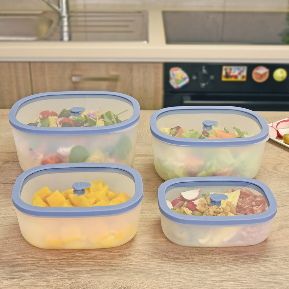Благодаря использованию вакуумных контейнеров, продукты не подвергаются воздействию кислорода и срок их хранения значительно увеличивается. Продукты сохраняют свои вкусовые качества и аромат, а запахи в холодильнике не смешиваются.