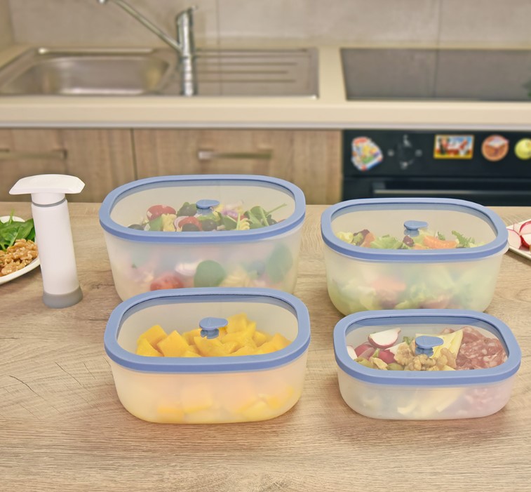 Благодаря использованию вакуумных контейнеров, продукты не подвергаются воздействию кислорода и срок их хранения значительно увеличивается. Продукты сохраняют свои вкусовые качества и аромат, а запахи в холодильнике не смешиваются.