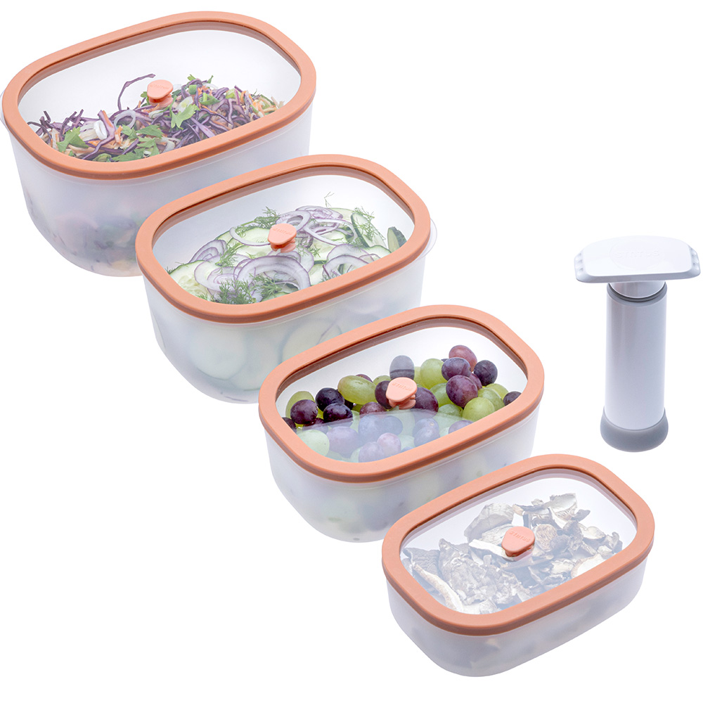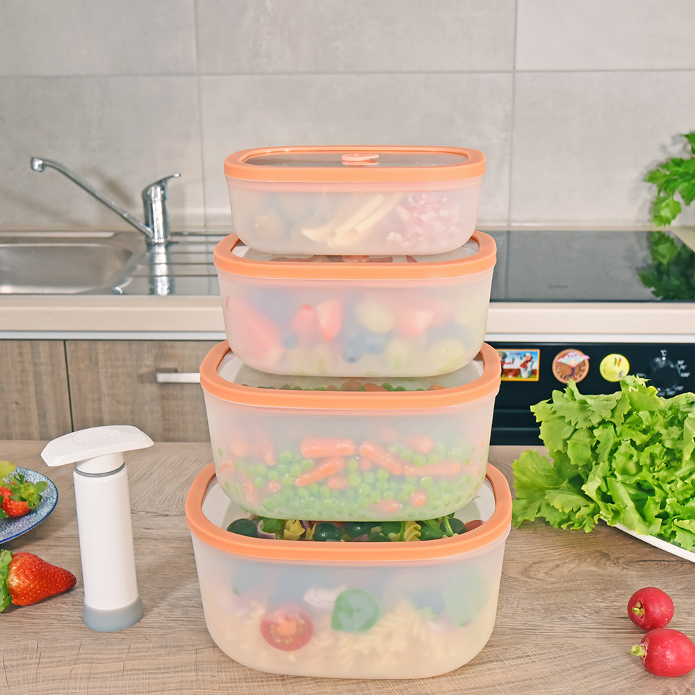 Благодаря использованию вакуумных контейнеров, продукты не подвергаются воздействию кислорода и срок их хранения значительно увеличивается. Продукты сохраняют свои вкусовые качества и аромат, а запахи в холодильнике не смешиваются.
