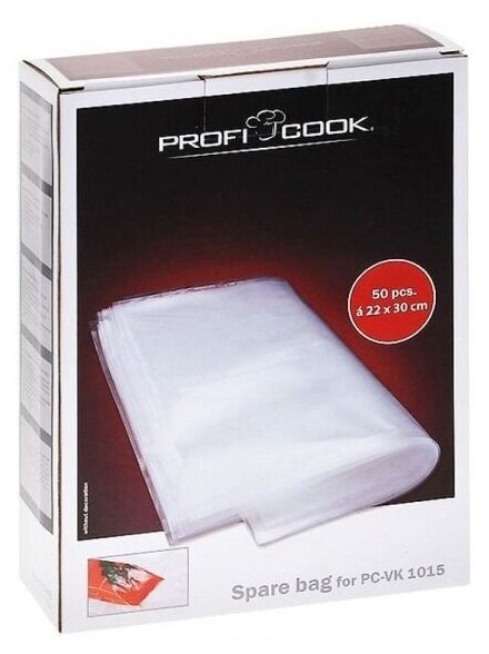 Вакуумные пакеты Profi Cook подходят для бескамерных упаковщиков, производятся из качественных пищевых полимеров, в составе которых не содержатся вредные элементы. Пленка является термостойкой, подходит для заморозки, СВЧ печей, а также приготовления продуктов в су виде. Каждый пакет обладает усиленной прочностью за счет расположения ребристости по диагонали на его внутренней поверхности.