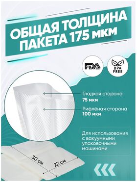 Пакеты изготовлены из полиэтилена и полиамида, одна сторона - плоская, толщиной 75 мкм, другая - структурированная, толщиной 100 мкм.