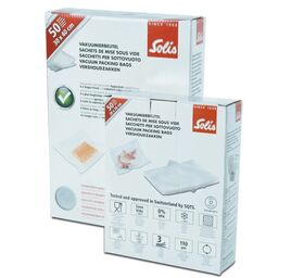 Комплект из 50 профессиональных пакетов размером 30 x 40 см для вакуумной упаковки. Ребристая внутренняя поверхность предназначена для оптимального вакуумирования. Высокая прочность пакета допускает замораживание, использование в СВЧ печи, а также готовку по технологии Sous-Vide.