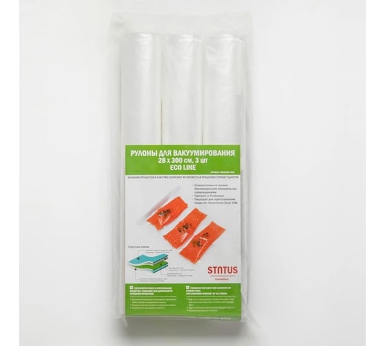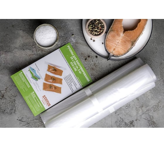 Рулоны для вакуумной упаковки Status VB283003-ECO изготавливается из двух слоев — полиамида и полиэтилена. Полиамид гарантирует непроницаемость и расположен снаружи. А полиэтилен, находящийся с внутренней стороны, гарантирует, что пакеты будут качественно запаиваться. Плёнка обеспечивает полную непроницаемость для кислорода во время вакуумирования и хранении продуктов. Если вы хотите сохранить качество ваших продуктов, поместите их в качественные вакуумные пакеты и рулоны. Специальные насечки на поверхности плёнки способствует качественному запаиванию вакуумным упаковщиком краёв пакета, независимо от того, сколько раз они были использованы. Специально подобранная форма ребристого профиля позволяет вакууматору легко и эффективно извлекать воздух.