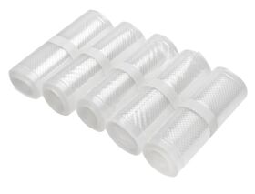 Специальные прочные рулоны STATUS VB 12х300 для вакуумного упаковщика с ребристой структурой. Высокая прочность допускает замораживание, использование в СВЧ печи, готовку по технологии Sous-Vide.