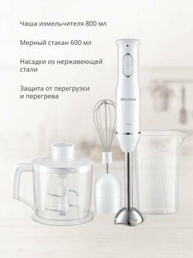 Блендер Blackton HB400S - это устройство 3в1, совмещающее в себе функции погружного блендера, измельчителя и миксера. Погружной блендер - это отличный помощник в готовке молочных коктейлей, жидкого теста для блинов и оладий, детского питания, ягодного сорбета, домашнего кетчупа и майонеза. Так же блендер поможет избавиться от неразбитых кусочков моркови или брокколи в крем-супе. Блендер Blackton может работать как миксер: установите насадку-венчик, и вы сможете взбить яйца для омлета или бисквита, сливки, легкий творожный крем или мусс на десерт. С помощью 4-лепесткового ножа из нержавеющей стали блендер с насадкой измельчитель поможет вам измельчить овощи, фрукты и даже орехи.