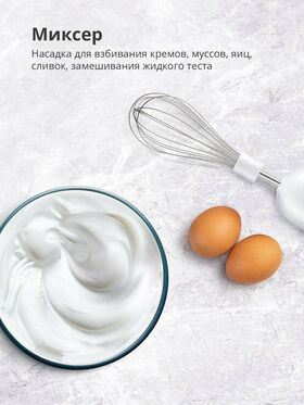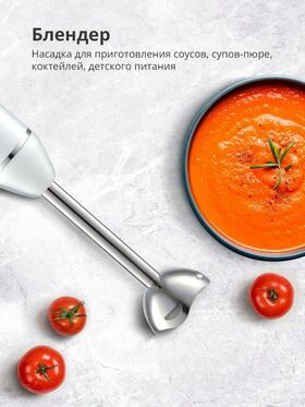 Блендер, насадка-блендер, насадка-венчик, мерный стакан, чаша измельчителя с крышкой, руководство по эксплуатации