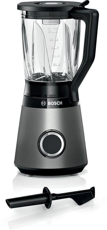 Блендер Bosch MMB6172S оснащен кувшином в 1.5 литра из термостойкого стекла, он подходит для горячих супов так и для холодных напитков.