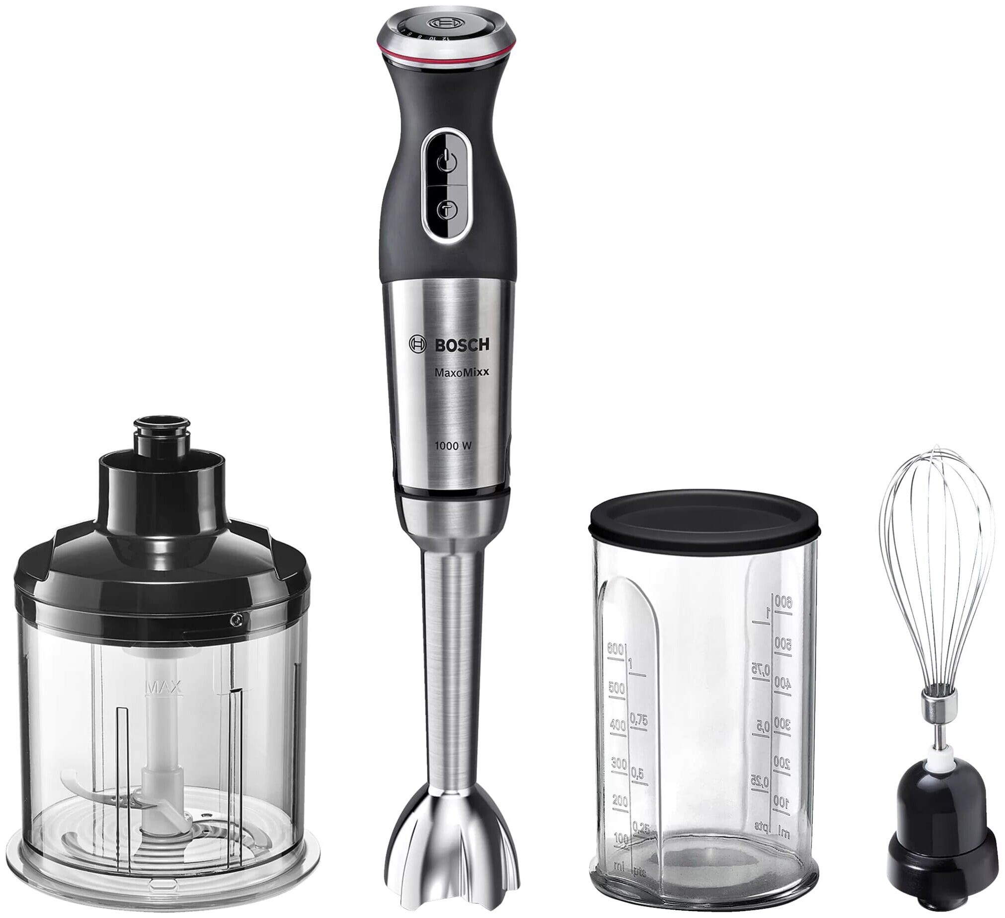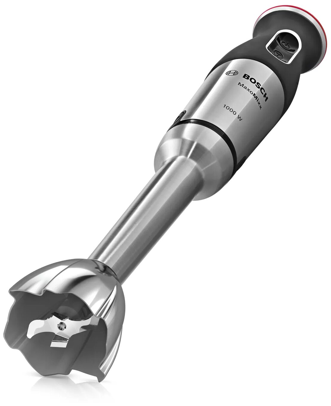 нож QuattroBlade Pro с 4-мя лезвиями; эргономичная форма рукоятки блендера с мягким антискользящим покрытием и большими кнопками; запатентованный механизм Bosch «Click» помогает без усилий прикреплять и отсоединять ножку блендера и аксессуары; ножку блендера, мерный стакана, измельчитель и венчик можно мыть в посудомоечной машине; в комплекте есть крышка для длительного хранения в холодильнике; венчик из нержавеющей стали