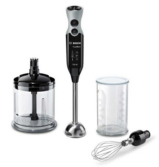 Блендер Bosch MSM 67160 оснащен металлической погружной частью, позволяющей работать с продуктами любой температуры. Турборежим дает возможность быстро перемешивать и измельчать ингредиенты. Он предназначен для приготовления небольших порций, так как емкость кувшина составляет 600 мл. В комплекте поставляются: измельчитель размера XL, мерный стакан (600 мл) и венчик для взбивания из нержавеющей стали.