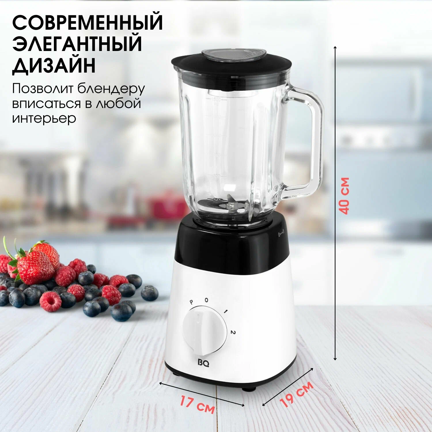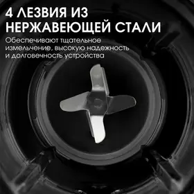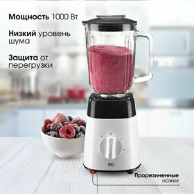 Блок электродвигателя, чаша блендера, нож, крышка с отверстием для подачи продуктов, мерный колпачок, руководство по эксплуатации,