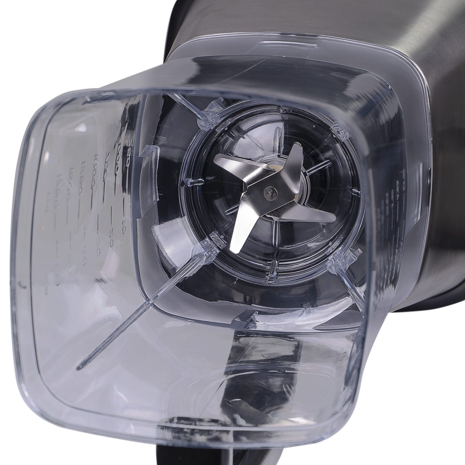 Стильный и прочный корпус прибора выполнен из нержавеющей стали, равно как и четырехлопастной нож.
