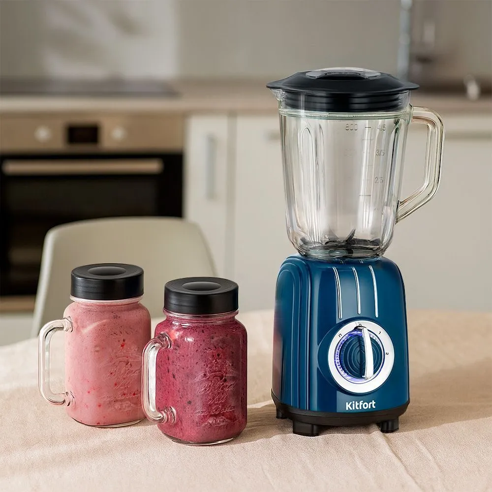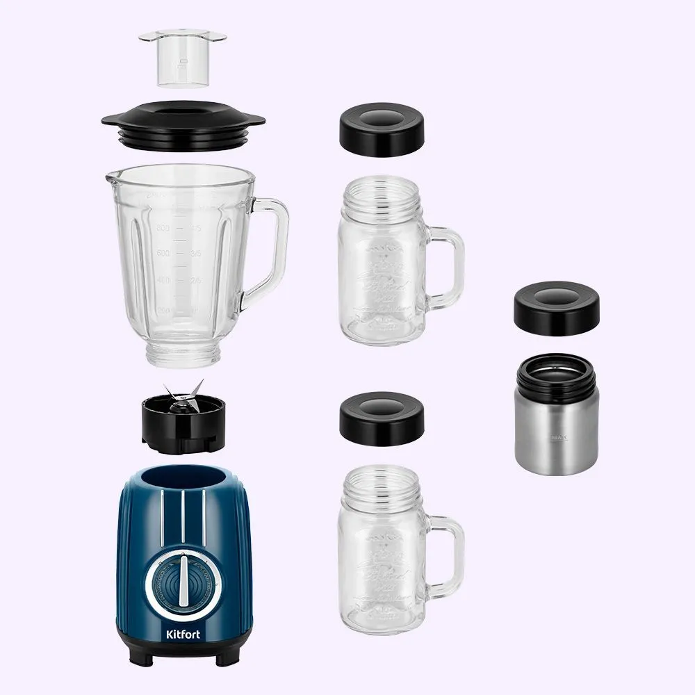 Блендер КТ-3523 выполняет функции не только блендера, но и кофемолки. В комплекте идёт стеклянная чаша блендера ёмкостью 1 литр и кружки для коктейлей. В крышке чаши блендера есть отверстие для добавления ингредиентов непосредственно во время работы.