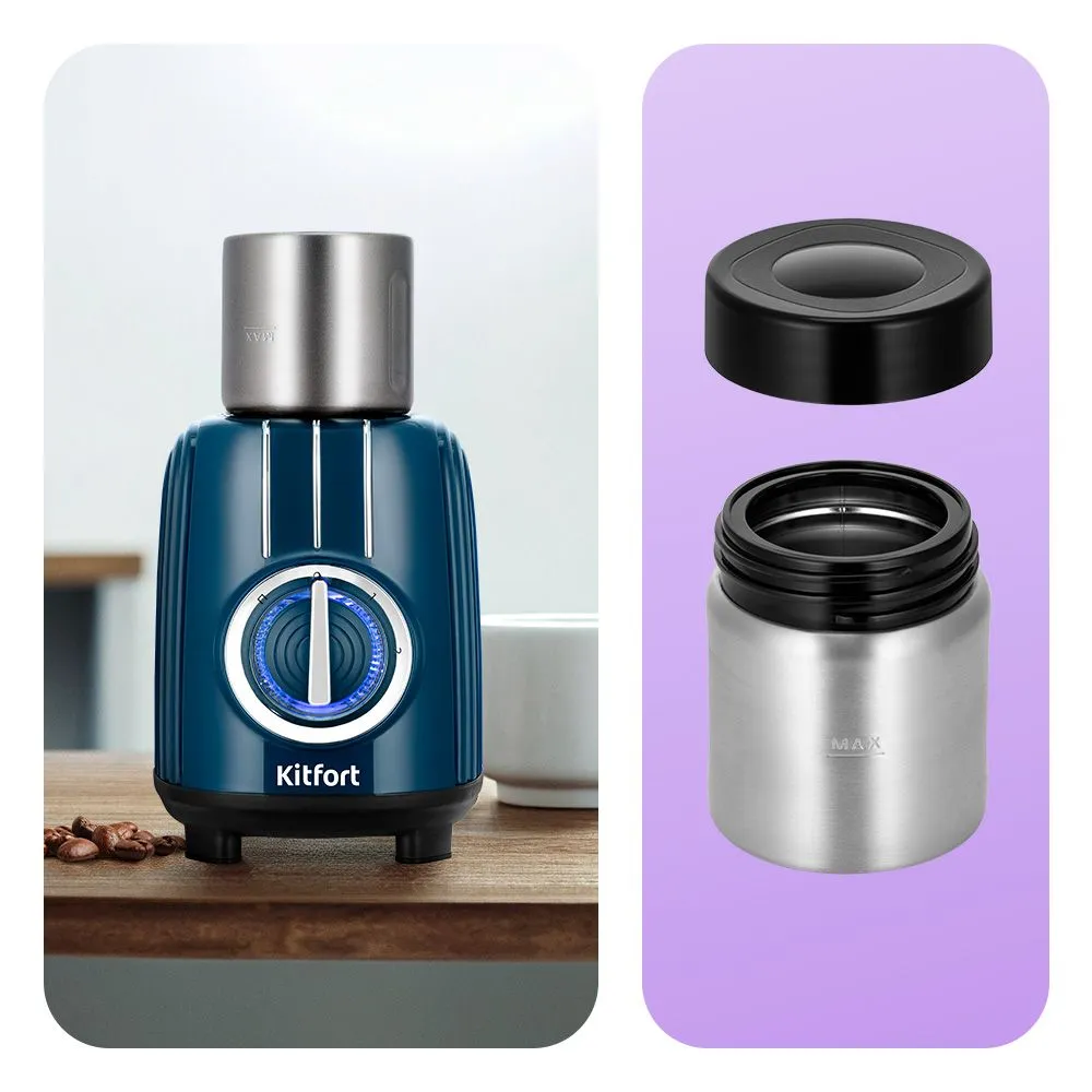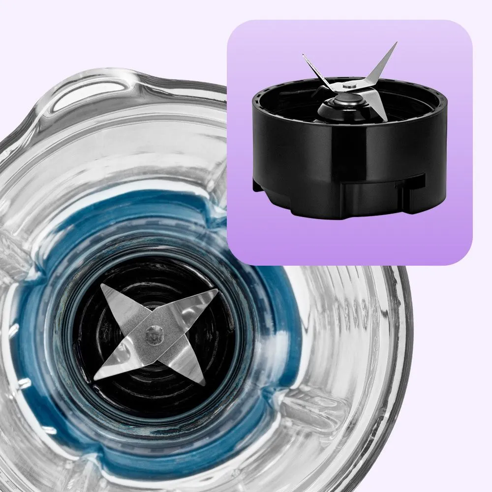 У данного блендера блок ножей с четырьмя лезвиями расположен внизу чаши. Блок ножей кофемолки имеет особую форму и подходит для перемалывания и измельчения твердых ингредиентов, таких как кофейные зерна, зерна перца и т.п. Ножи из нержавеющей стали.