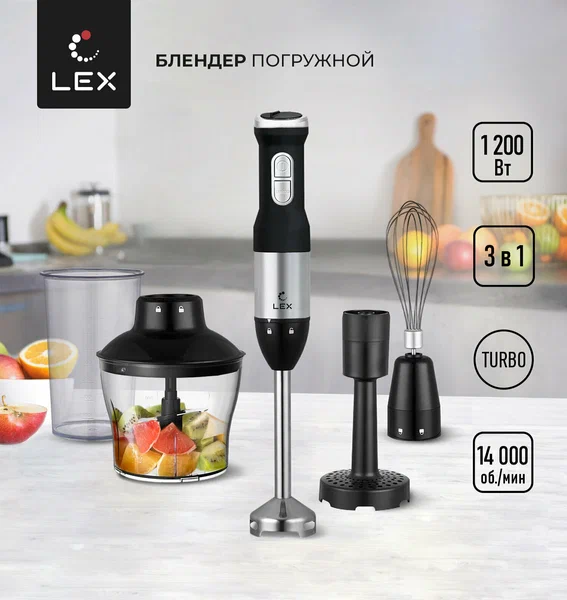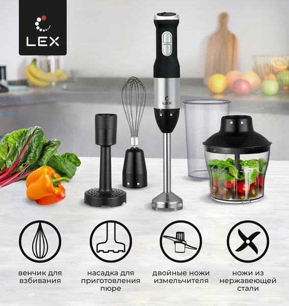 Крышка измельчителя, Моторная часть, Насадка-блендер, Насадка-венчик, Насадка для приготовления пюре, Переходник для насадки-венчика, Чаша для измельчения