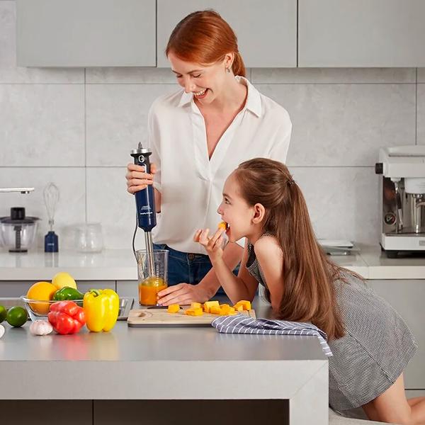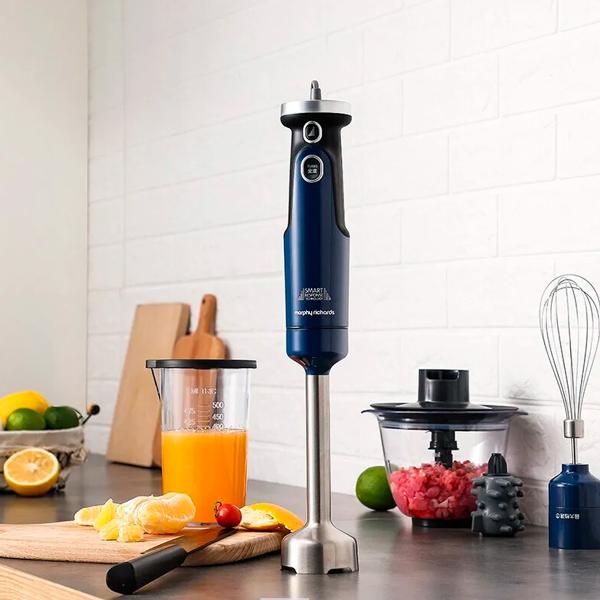 Многофункциональный блендер Morphy Richards MR6006B синего цвета — модель погружного типа с мотором мощностью 600 Вт.