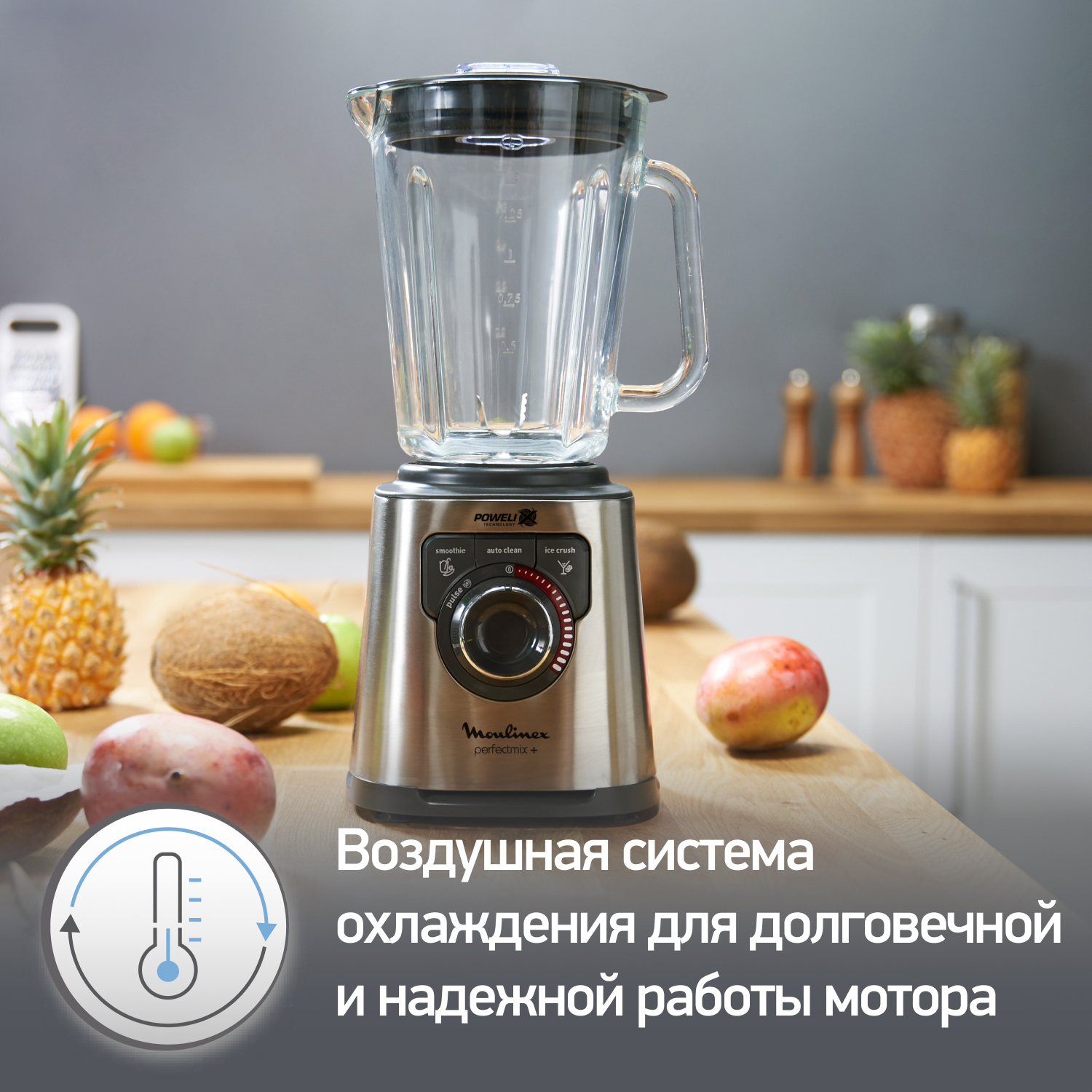 3 автоматические программы (Смузи, Измельчение льда и Автоочистка), система воздушного охлаждения