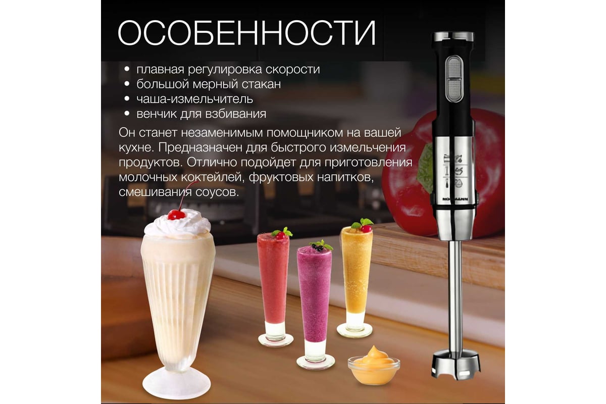 Погружной блендер NORMANN AHB-812 станет незаменимым помощником на вашей кухне. Оснащен поворотным регулятором скорости и подсветкой кнопок управления.