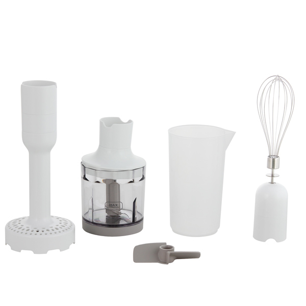| венчик для взбивания, мерный стакан, насадка для приготовления пюре, измельчитель |