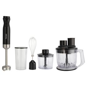 Комплектация: блендер, измельчитель, мини-измельчитель, мерный стакан, насадка-венчик для взбивания, насадка для нарезки кубиками, насадка-терка, насадка для нарезки ломтиками, безопасная насадка толкатель для очистки, гарантийный талон, инструкция на русском языке