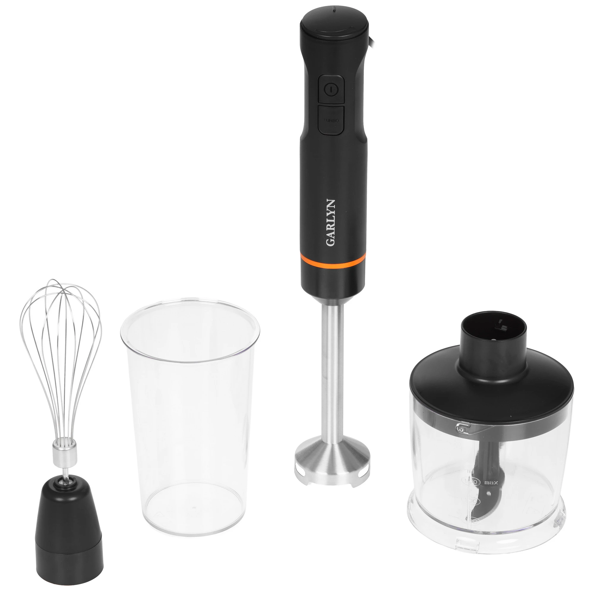 документация, мерный стакан, насадка - блендер, насадка - венчик, насадка - измельчитель, нож для измельчения