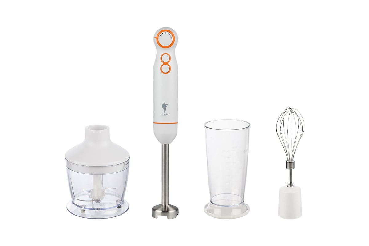 Погружной блендер Leonord le-1722 белый 105811 предназначен для измельчения продуктов, приготовления коктейлей и пюре.