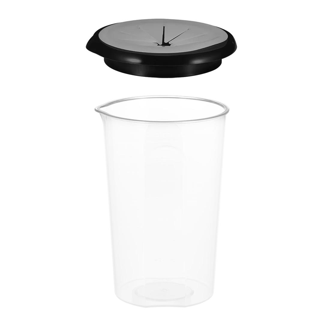 Также в наборе вместительный мерный стакан 0,7 л из небьющегося пластика (BPA free) с защитной крышкой от брызг.