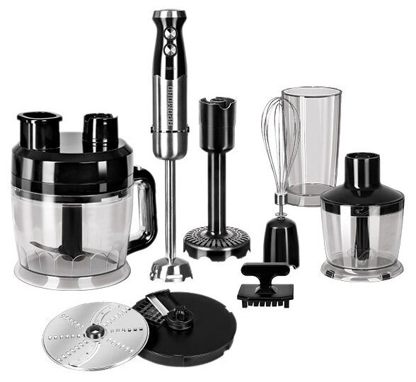 - турборежим, терка, диск для нарезки ломтиками, насадка для нарезки кубиками, насадка для приготовления пюре