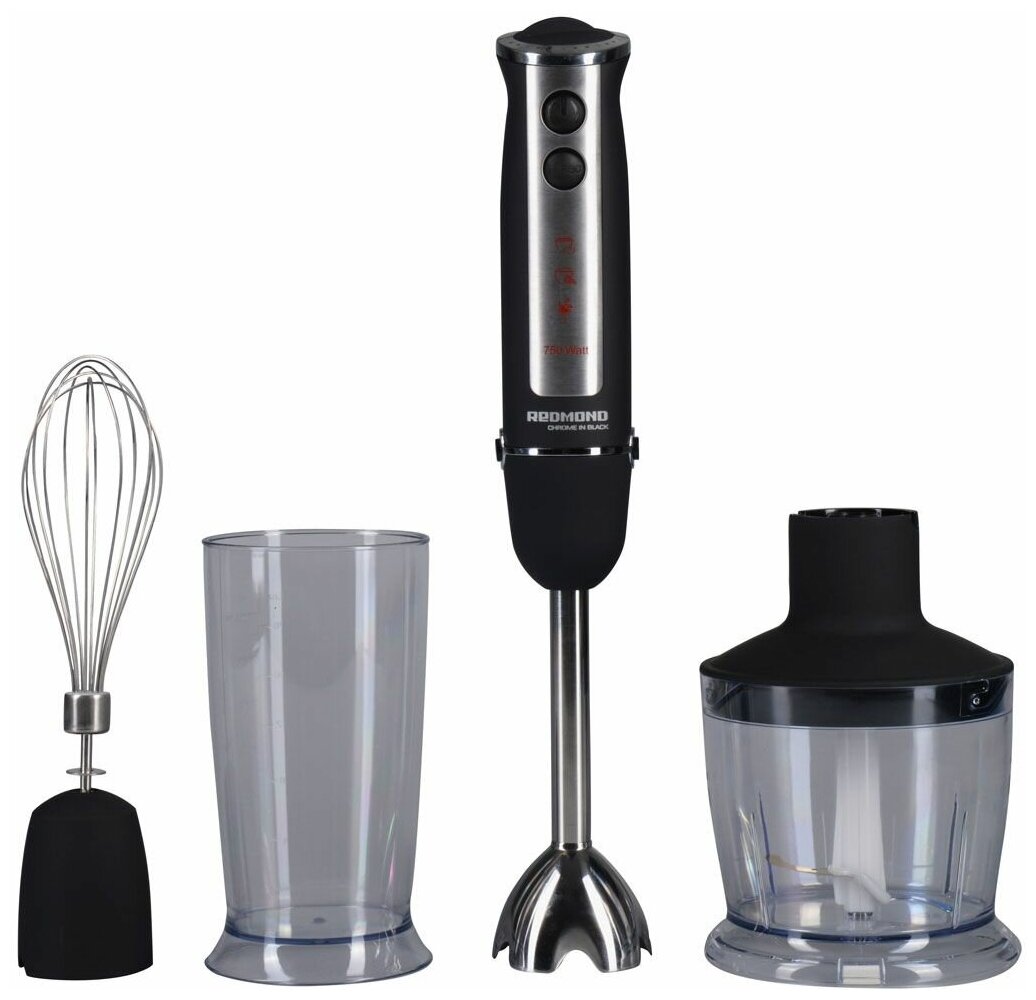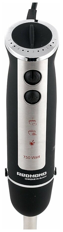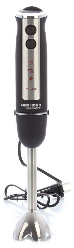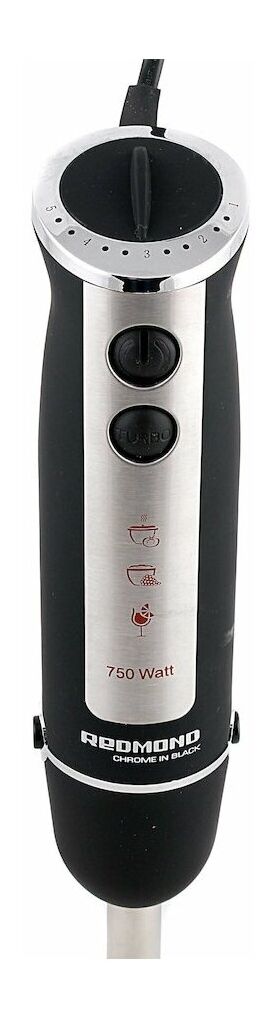 9000 - 15000 об/мин; турборежим 16000 об/мин; номинальная мощность 750 Вт; погружная часть и ножи из нержавеющей стали; S-образный нож; II класс защиты от электрического тока; защита от перегрева и перегрузки; переходник для насадки венчика