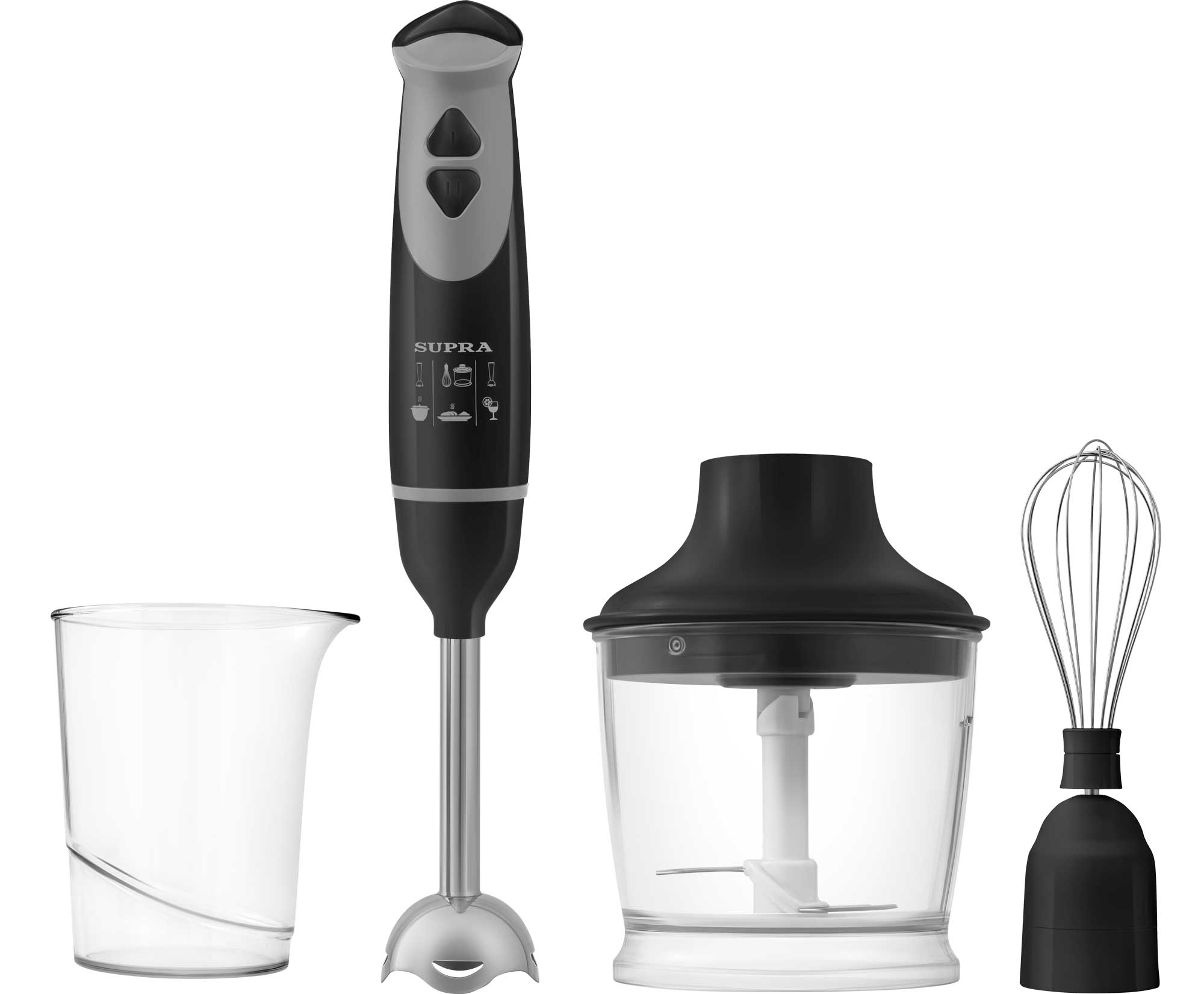 Комплектация блендер, съемная насадка-венчик из нержавеющей стали, мини-измельчитель 500 мл, чаша для взбивания 500 мл, гарантийный талон, инструкция на русском языке
