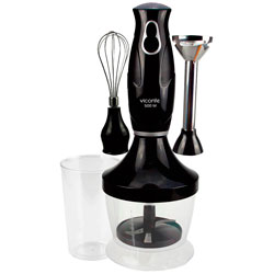 - Комплектация: венчик для перемешивания, венчик для взбивания, чаша для измельчения, мерный стакан.
