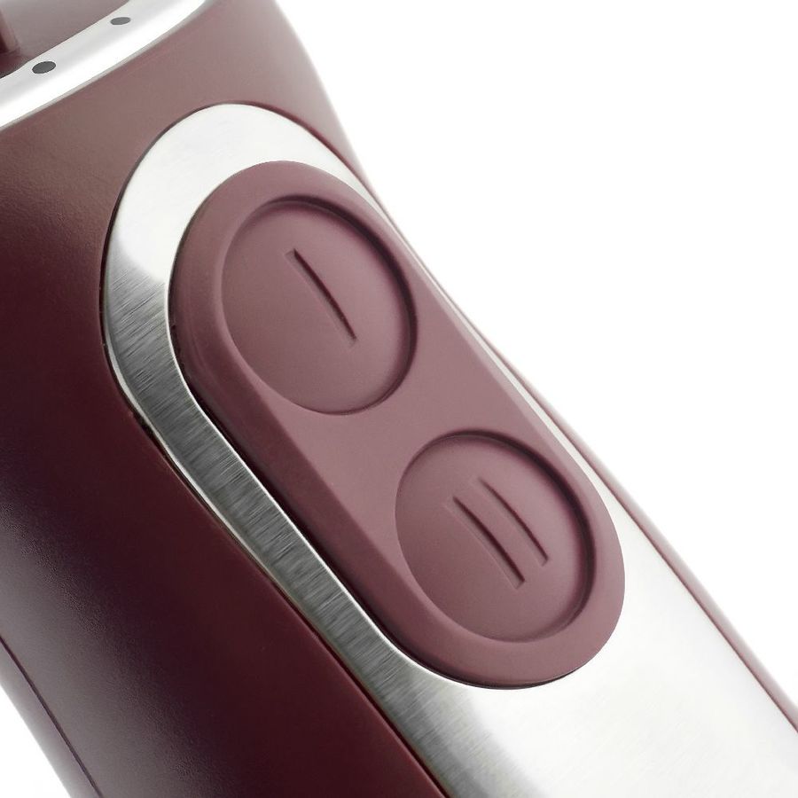тип: погружной, максимальная мощность: 900 Вт, материал погружной части: металл, насадки: венчик для взбивания, измельчитель, в комплекте: мерный стакан, дополнительные функции: плавная регулировка скорости, емкость измельчителя: 0.50 л, количество скоростей: 2