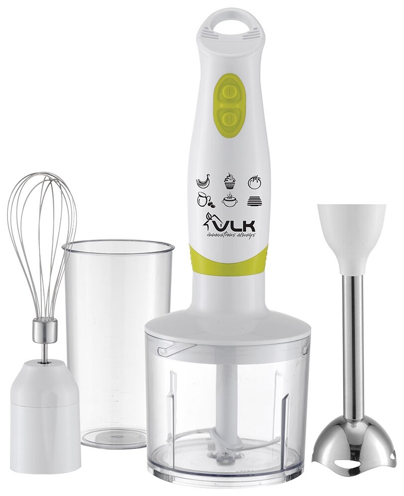 нержавеющая сталь; специальная форма погружной насадки предотвращает попадание брызг на рабочую поверхность; низкий уровень шума и вибрации; насадки можно мыть в посудомоечной машине