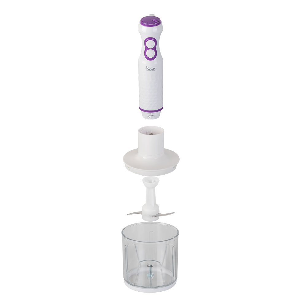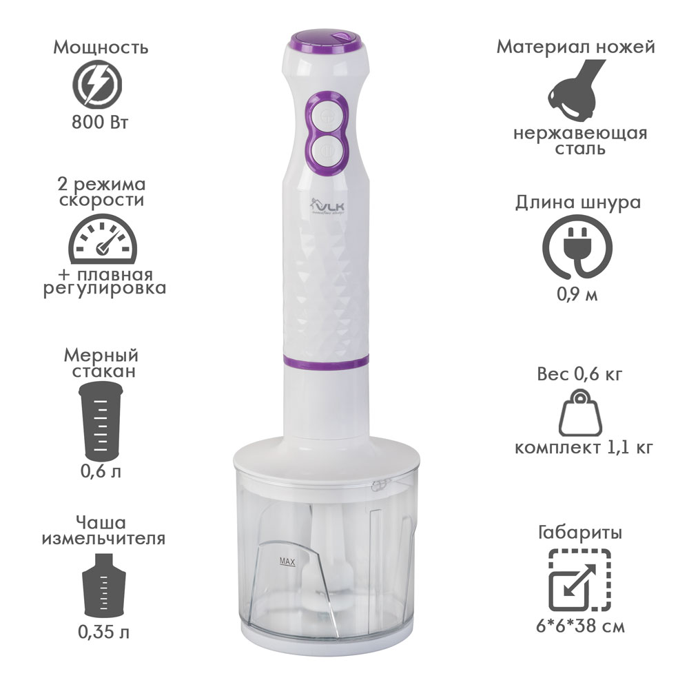 Два режима скорости + плавная регулировка скорости, Специальная форма погружной насадки предотвращает попадание брызг на рабочую поверхность, Эргономичный дизайн, Низкий уровень шума и вибрации , Материал ножей: нержавеющая сталь, Снятие насадки одним легким движением, Скорость вращения ножей до 14 000 об/мин, Защита от перегрева мотора, Дополнительный комплект аксессуаров