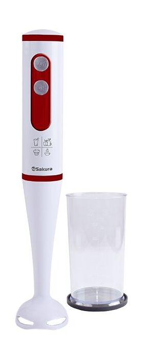Материал корпус и погружная часть блендера из пластика; лезвия из нержавеющей стали; пластиковый стакан; силиконовая крышка-подставка