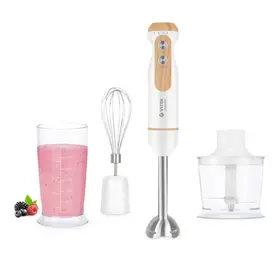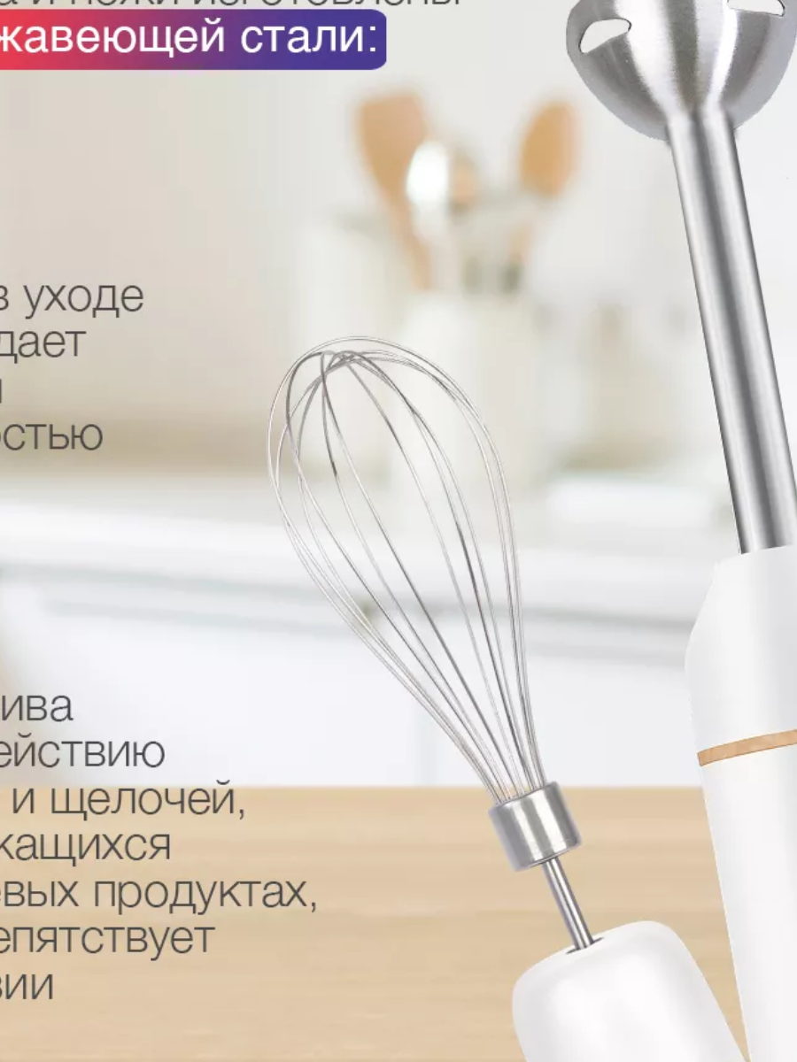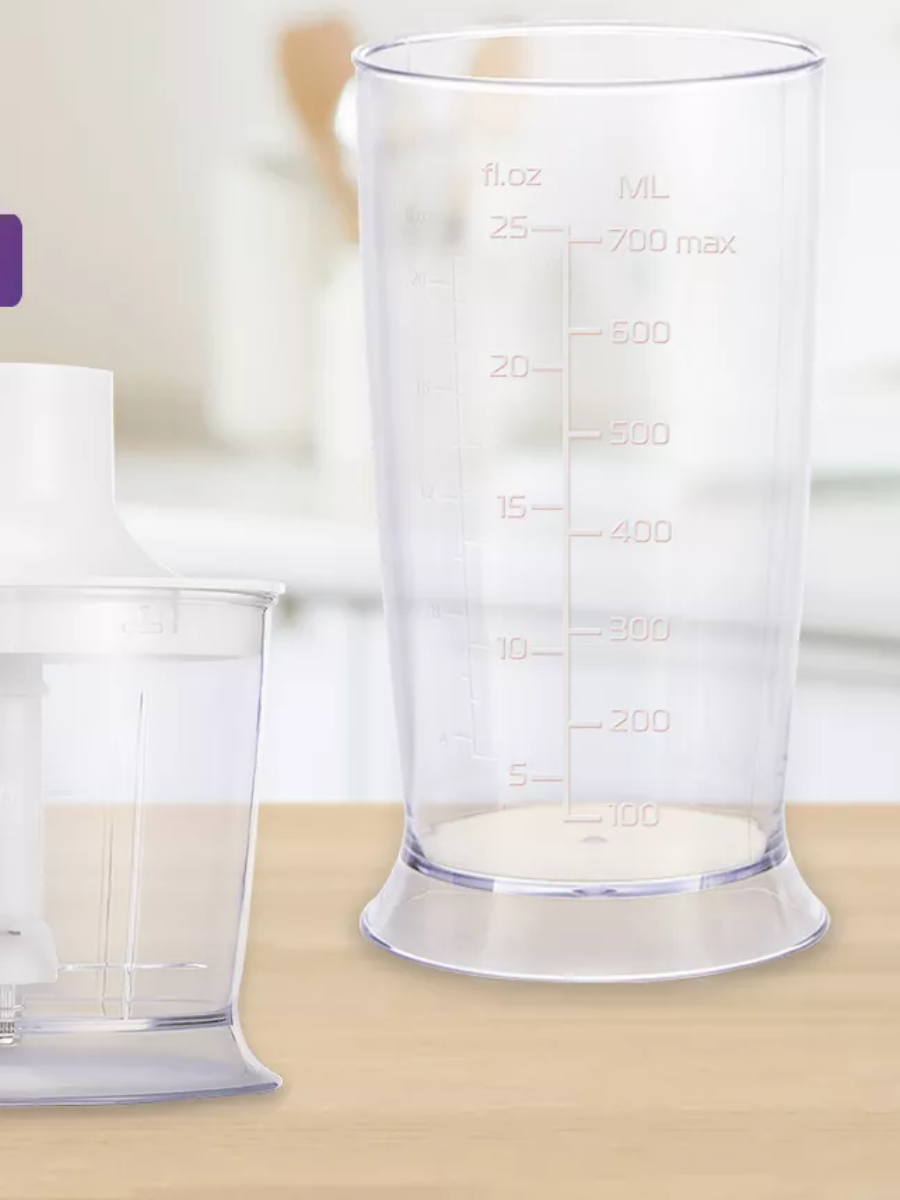 Комплектация блендер-1; венчик-1; насадка-чоппер-1; мерный стакан-1; измельчитель-1; нож измельчителя-1