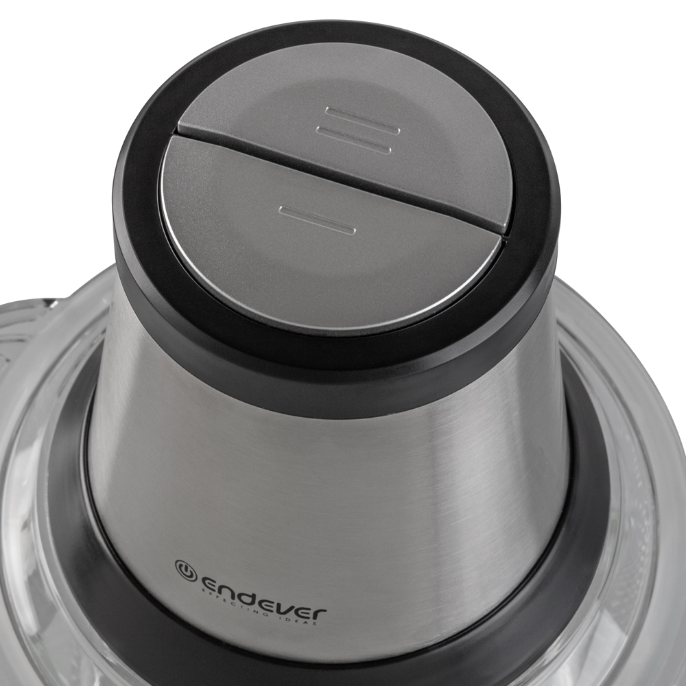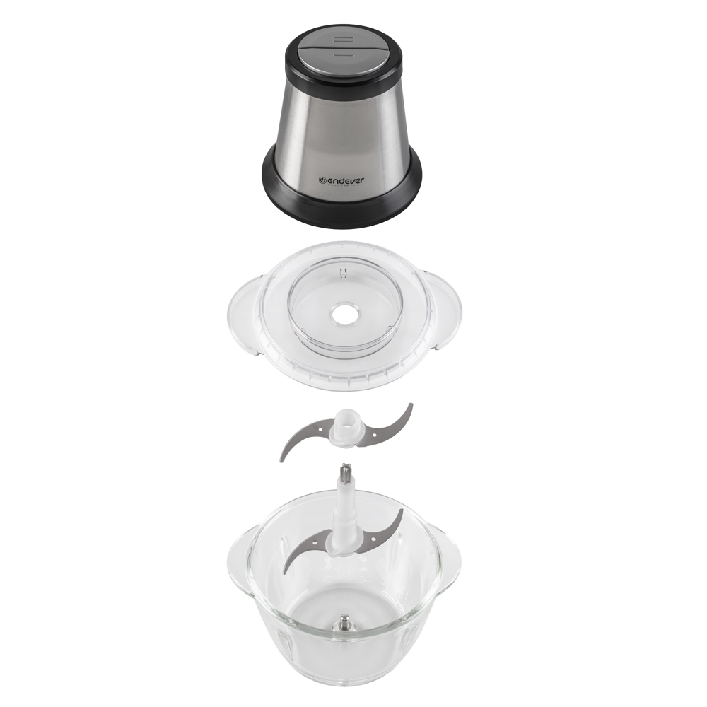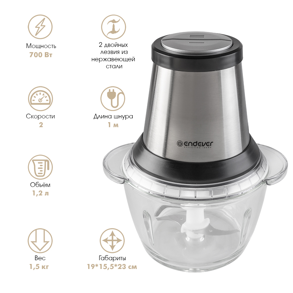 2 двойных лезвия и ручка из нержавеющей стали, Высокопрочная чаша из ЭКО-стекла, Противоскользящая подставка, 2 скорости работы, Герметичная защита от брызг, Быстрое измельчение и нарезка фруктов, овощей, трав, мяса, рыбы, твердого сыра и т.п.