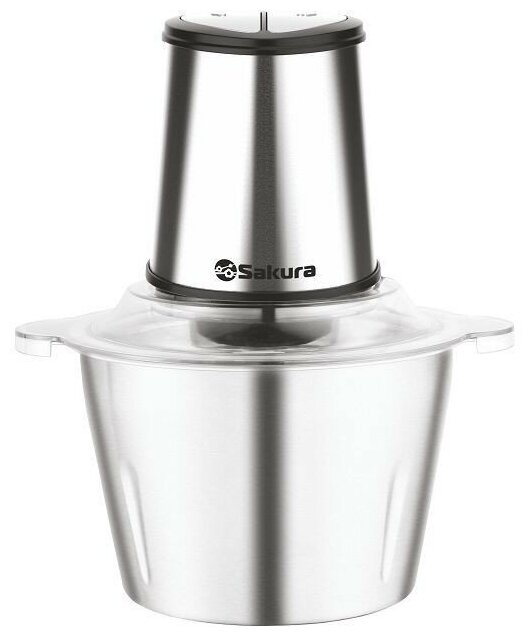 Материал: чаша из стали (2 л), верхняя часть из пластика, силиконовая подставка, 2 двойных ножа из нержавеющей стали