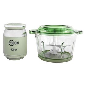 Электрический измельчитель Beon BN-2702 зеленого цвета весит 1,81 кг. Корпус измельчителя произведен из металла. Контейнер изготовлен из пластика. Модель потребляет 500 Вт. Управление устройством кнопочное.