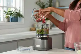 Инновационный мультифункциональный измельчитель Duo Prep от Kenwood откроет новый мир вкуса на вашей кухне с помощью функции измельчения, которая поднимает его производительность на новый уровень. Специальная чаша и лезвия кофемолки из нержавеющей стали в сочетании с высокой скоростью вращения соответствуют производительности автономной кофемолки и позволяют справляться с жесткими специями. Супер острые лезвия гарантируют идеальное измельчения, а добавлять масло и жидкость по мере обработки вы можете не снимая крышки.