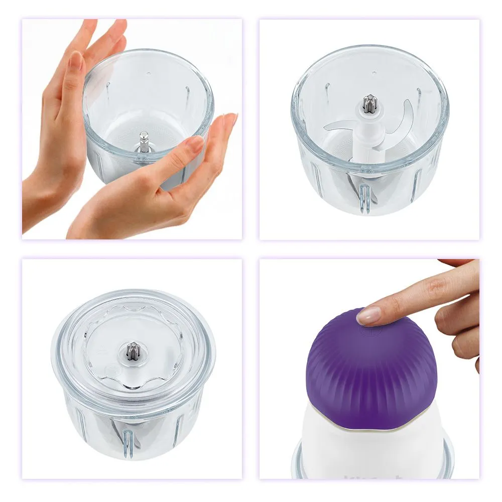 Измельчитель быстро измельчает мясо, твердый сыр, овощи, травы, чеснок и ягоды. Прибор очень компактный, не займет много места — емкость чаши всего 300 мл. Чаша измельчителя сделана из экологически чистого материала — стекла, ее можно закрыть крышкой и использовать для хранения продуктов.