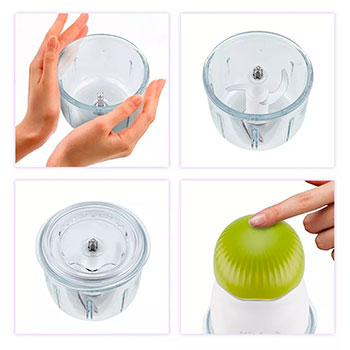 Стильный и компактный измельчитель быстро измельчает мясо, твёрдый сыр, овощи, травы, чеснок, ягоды. Он исключает ваше участие в процессе измельчения, обеспечивая безопасность и экономию времени. Готовить блюда можно гораздо быстрее.