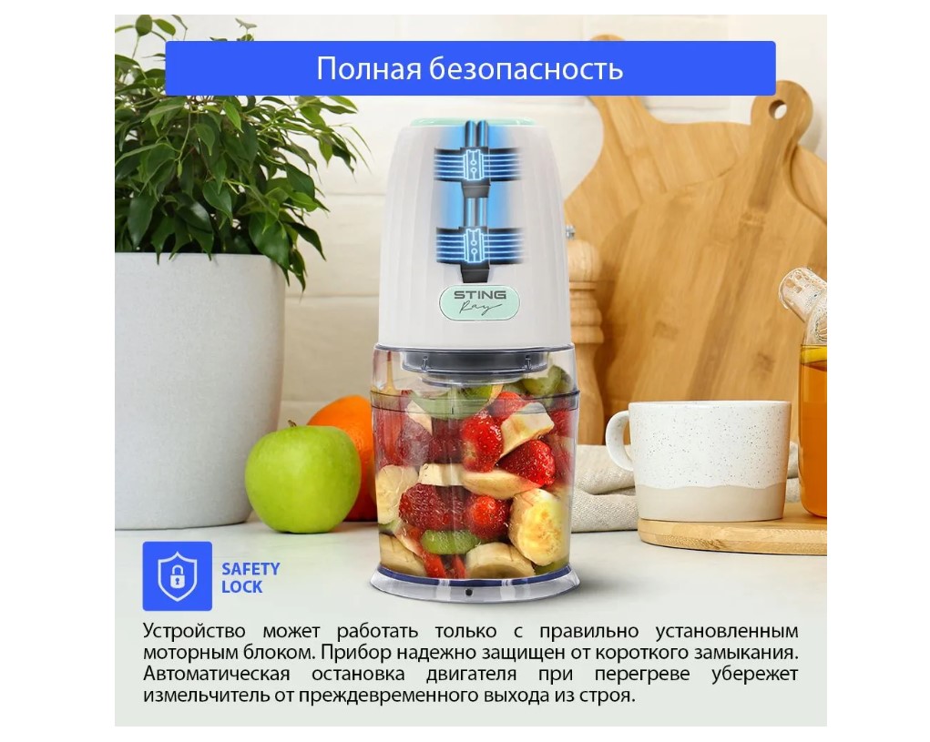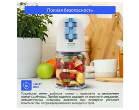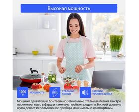 Мощный измельчитель с пластмассовой чашей объемом 600 мл и одним скоростным режимом. Подходит для измельчения, взбивания, смешивания. 2 съёмных ножа из нержавеющей стали не деформируются, не ржавеют, не подвержены коррозии, легко моются и имеют максимально длительный срок службы. Прибор имеет кнопку управления, удобен и прост в использовании, занимает при хранении немного места.