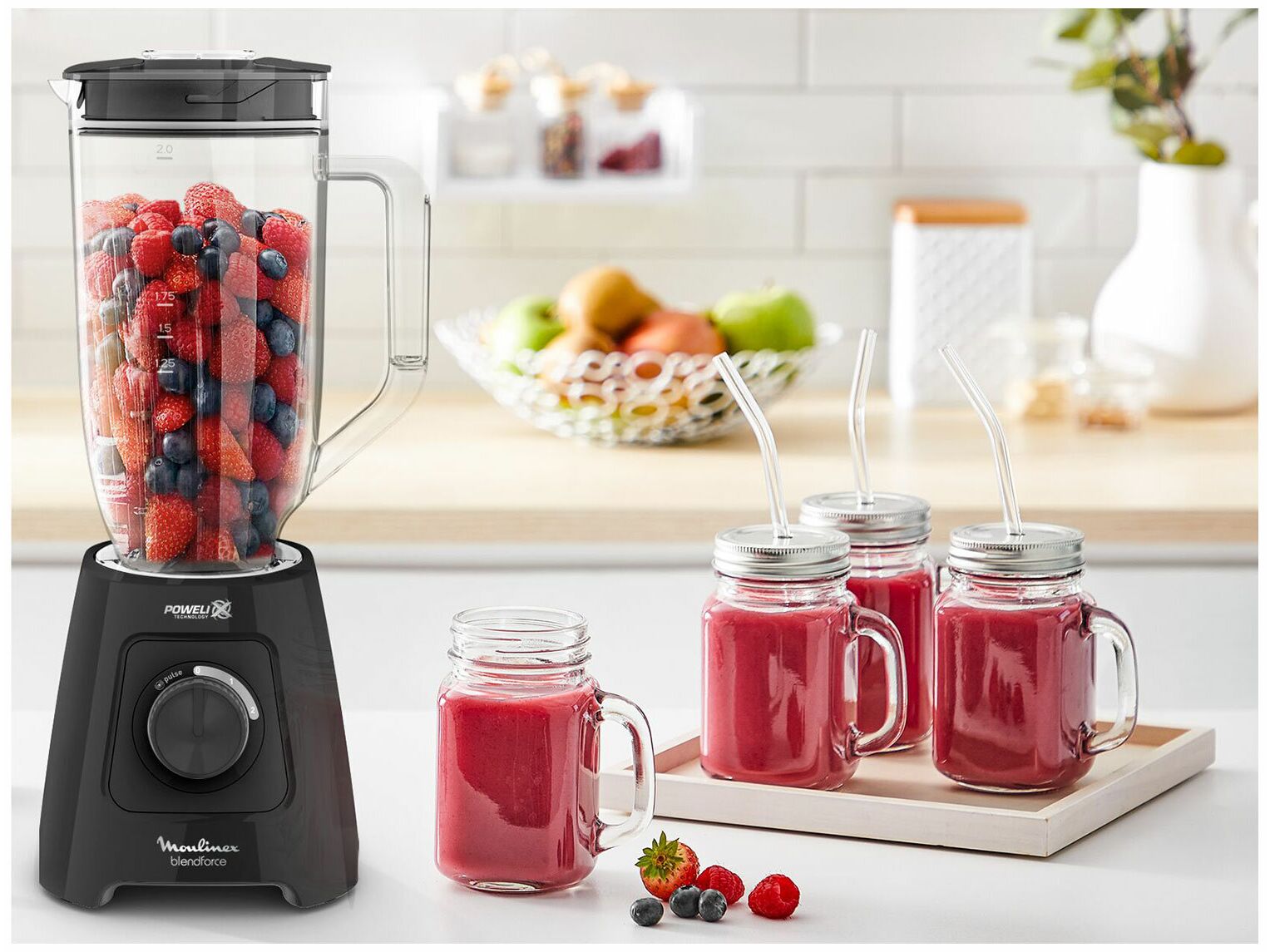 Мощный блендер станет незаменимым помощником на вашей кухне благодаря своей вместительной чаше объемом 2,8 литра и 6 лезвиям Powelix, которые обеспечивают идеальное измельчение ингредиентов без комочков. Мощность в 600 Ватт и 2 скорости работы позволят вам подобрать оптимальный режим для различных рецептов, а импульсный режим пригодится при измельчении особо твердых продуктов. Специальная функция измельчения льда позволит вам делать коктейли. Гладкая пластиковая чаша легко моется, а система блокировки Smart Lock обеспечивает безопасность при снятии лезвий. Универсальный блендер подойдет для измельчения, помола и приготовления смузи.